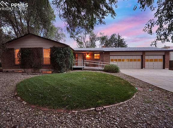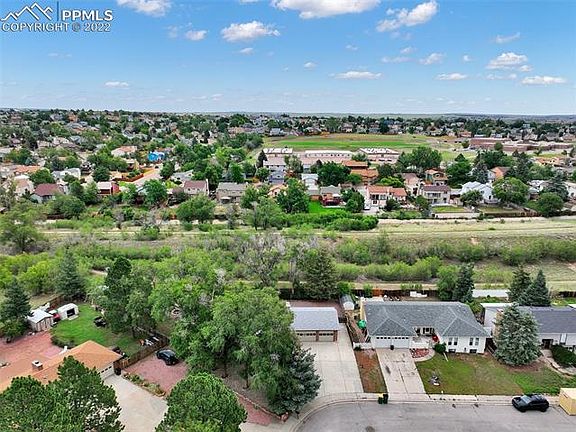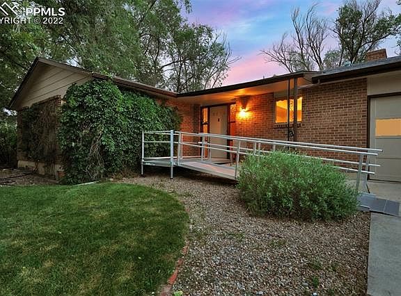 Beautifully updated 5BR, 3BA ranch-style home on a 0.20-acre cul-de-sac lot that backs to open space. Convenient wheelchair ramp to the front door of this inviting home. Covered front porch to enjoy the Colorado sunshine. Light and bright, open floor plan with new interior paint and gorgeous wood laminate floors through most of the main level. The main level features a large Living Room open to the Kitchen and Dining Room. The Dining Room has a slider to the backyard patio that extends to an addtl paver patio for outdoor relaxation and fun. The Kitchen includes cabinets w/laminate countertops, an electric range oven w/vent hood, dishwasher, and stainless-steel French door refrigerator. Upgrades include new lights, new carpet in the bedrooms and basement family room, and new mirrors, vanities, and toilets in the bathrooms. The hallway offers a handsome, custom desk area and leads to 3 main-level bedrooms and 2 shower bathrooms. The primary bedroom provides double closets. New black iron stair rails lead to the huge, finished basement that offers a family room, 2 bedrooms, a shower bathroom, and laundry/storage room. The family room features a wood-burning fireplace w/brick surround and raised hearth. The laundry/storage room has wood plank walls, attractive new linoleum floors, and a washer, dryer, and freezer that stays. This lovely home has a swamp cooler and radon mitigation system (as is). 3-car garage w/door opener, service door, and workshop. No HOA. The private, fenced lot includes concrete and paver patios, access to the garage, mature trees for privacy, a storage shed for tools and toys, an extra wide side yard for RV or boat storage, and its own gate to the walking trails. Ideal location close to trails, golf course, restaurants and shopping. Easy commute to all military bases.