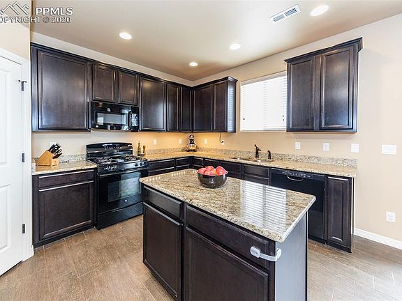Feel completely at ease in this pristine and meticulously cared for home just minutes from the Powers Corridor. Gourmet kitchen with gas stove/oven, ample amount of 42 inch cabinets, recessed lighting and a walk in pantry will have you feeling like a professional chef. Granite countertops in both the kitchen and the bathrooms. Central A/C for those hot days in the summer along with ceiling fans in every bedroom and the living room will keep you cool and comfortable. Tiled floors downstairs in the main living area. Master bedroom has walk in closet and 5 piece master bath adjoining to it. Low maintenance and relaxing backyard that backs up to open space has been xeriscaped. Front yard has built in sprinkler system which can connect to backyard if grass is desired in the back. Very well maintained home that is ready for a new owner to love won't last long, schedule your showing today!