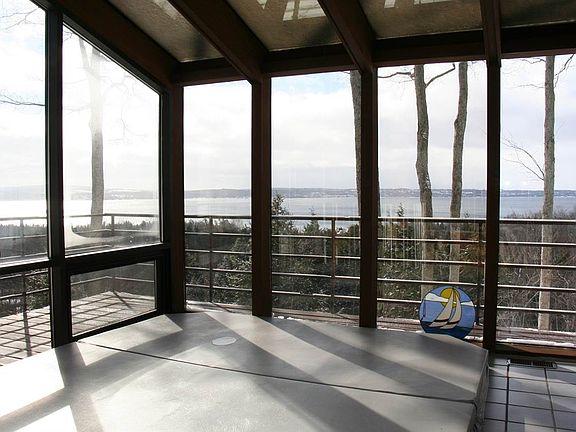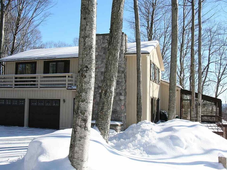 Wonderful home overlooks Lake Michigan. The deep and panoramic views spread from the Petoskey State Park to Harbor Springs including all of Petoskey. This 4 bedroom home has all the amenities; a massive split beach stone fireplace, sauna, an office (or 5th bedroom), master bedroom with private porch, wooded back yard, deck the length of the house and a 3-season hot-tub room to enjoy the breath-taking view. Facing South guarantees more sun year round for this perfectly perched property.