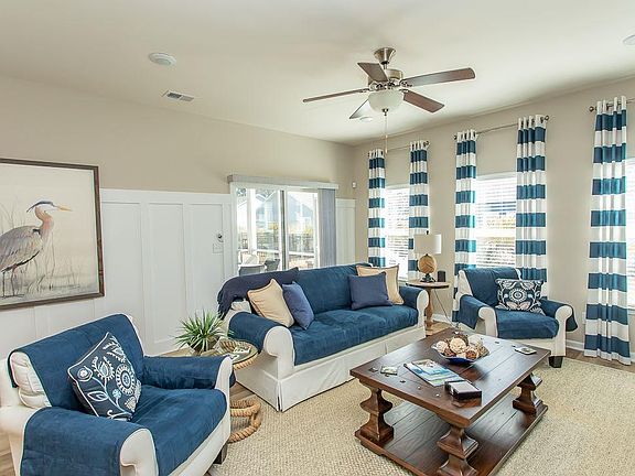 This former Beazer Camden Model Home is in SUPERB CONDITION and has never been lived in full time. If you ever dreamed of a SHOWPLACE, this is it. Owners visit occasionally and have never rented their home. The open floor plan gives a spacious look to this home. This gorgeous home has all the extras you could ever desire. Some of these features are 42" glazed castle cabinets with crown molding, mullion glass inserts in cabinets, soft close cabinet doors and drawers in kitchen and master bath, slide out bottom trays added to lower kitchen cabinets and double oven. Breakfast bar area. All new Whirlpool appliances are included. Other amenities include: rare 9 foot ceilings with a tray ceiling in the Master Bedroom, upgraded wains coated walls, ceiling fans, vinyl flooring with wood accents in main living areas, ceramic tile and carpeting in other rooms, tiled master shower, large master and guest baths, screened in porch, built in firepit and patio, Certified Energy Star Home, and 400 bonus heated and cooled square feet in garage. The garage also has additional recessed lighting, finished walls and ceiling, added side entry door to the the garage , and extra electrical outlets. Access to the attic, which is floored, is in the garage. Outside of the 9 X10 rear screened porch is a built in custom firepit with a sitting wall and custom paver patio/grilling area. This home is beautifully landscaped on all 4 sides including 2 large palm trees in front and In- ground lawn irrigation system. Also unique to home is the upgrade Whole House Comfort System. This consists of ceiling vents inside and outside each bedroom door with connecting ductwork above the ceiling. This allows air flow between rooms when doors are closed. This helps to maintain a consistent temperature through the home. No more Hot or Cold Rooms. The many upgrades that are included in this former model home make this a one-of-a-kind property that stands out in the neighborhood. Make an appointment to see this BEAUTY today.