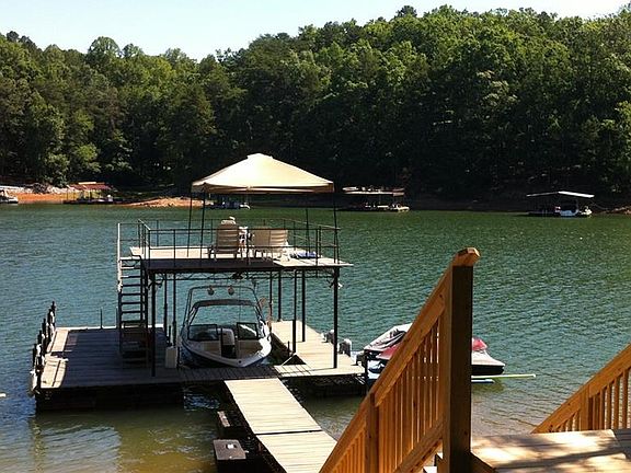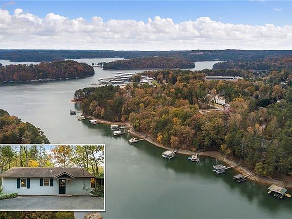 WE HAVE MULTIPLE OFFERS ABOVE LIST PRICE. PLEASE SUBMIT H&B. Beautiful wide open view, only 81 feet to water at full pool. Very gentle slope to VERY DEEP water! Fish, or hang out on your single slip Dock w/ party deck. Deck on back of house is huge (spans the entire width of the home). Large stone patio with fire pit close to waters edge. Fantastic Location on south end of the lake - 1.5 miles to GA400/Market Place Blvd., 3 mi to downtown Cumming, 1/4 mile to Bald Ridge Marina. Large Brick Fireplace, Tongue & Groove flooring and vaulted ceiling. Very private lot! Home sits 150-200 feet off the road providing privacy. Did I mention DEEP WATER under the dock! No chasing receding water needed.