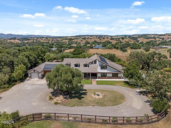 2075 Still Meadow is a 5-acre property located in the highly desirable Ballard area and boasts the best Santa Ynez Valley has to offer. The small community strikes a great balance of privacy and rural surroundings while being only a mile from the famous Bob's Well Bread, Ballard Elementary School and just a few miles from Los Olivos. Still Meadow Road offers a bucolic entry to the property, passing similar 5-acre ranches, green pastures, horses and farm animals. Through the property's private gates, a Pepper Tree lined driveway leads to a circle drive and the updated contemporary farmhouse. Inviting and well appointed, the two-story home includes 3 bedrooms, 3 bathrooms, a recently renovated kitchen, large bonus room, office, movie theatre and more. The hand-hewn wood floors, soaring cathedral ceilings and large picture windows anchor the home's architectural style with its high-end, comfortable, ranch-style vibe. The property's unique location and topography offer stunning panoramic views of the surrounding mountains. Walk outside the main home and find a property that has taken advantage of every aspect of its environment. The impressive new pool and spa overlook Beckman Vineyard & Winery with Grass Mountain in the background. The 16-stall show-barn is an equestrian lover's dream, with numerous pastures, turnouts and a working arena. Inside the barn is a well-appointed 1 bedroom, 1 bathroom guest house with a large, shaded patio. On municipal water, solar + tesla charger.