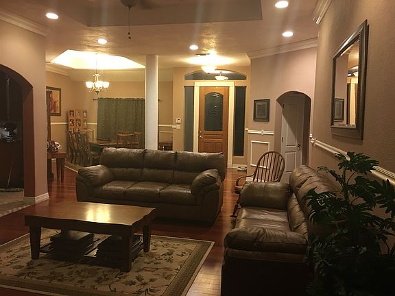 5 Acres!! Main house has 5,500 sq ft. 5 Bedrooms, 4 Bathrooms. Lovely huge, open floor plan. Kitchen, custom made cabinets, granite counter tops, side by side refrigerator & freezer. Huge Rooms! Attached 2 car garage + 2 car detached garage with RV covered parking & separate boat storage. Outdoor cvd patio with entertainment area, w/fireplace, batting cage & basketball court are sure to be loved by the family. PLUS separate 800 sq ft living quarters. There is to much greatness to list! Call for showing.