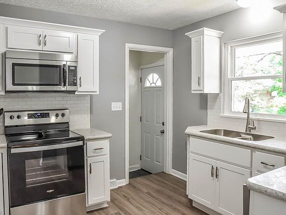 Beautifully remodeled 3 bedroom, 1.5 bath brick ranch with a finished lower level! The living room boasts an enormous bay window that fills the room with natural light. It opens to the dining room for easy entertaining! Be the first to create culinary masterpieces in the brand new kitchen with white cabinets, new countertops, tile backsplash, stainless steel appliances and a lazy Susan! Down the hall, the master suite has a private half bath with a gorgeous new vanity. There are 2 additional bedrooms and a remodeled full bath with tile shower surround and updated vanity set against a shiplap wall. Extra living space with a 38x13 finished rec room on the lower level! Unfinished side is super clean, offers laundry hookup and storage. 2-car detached garage, too. Updates include new flooring, lights, paint, hot water tank, roof, windows and more! Move-in ready - donât miss out!