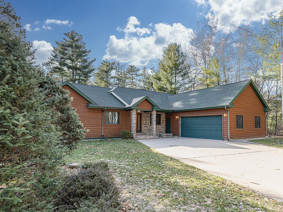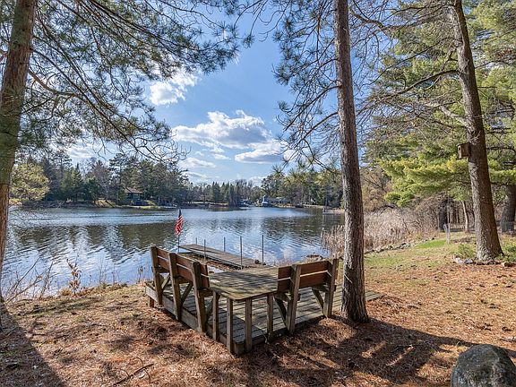 Norway Brook - A full moon backlights the brook for a choir ensemble of swans, geese and loons. The chorus lifts from the water's surface fronting this sprawling cedar attired lake home. The home features 3 oversized BR's including the ensuite. There are 2 additional baths with one including an unexpected sauna. The LR includes a gas FP overlooking a fenced in paved stone patio. There is an attached insulated double garage with a finished epoxy floor and a detached double garage on the lakeside. The lot is pine studded with gentle elevation to 107' of shoreline. A permanent dock, paved and concrete drives, city sewer and black top access complements this unique offering. Boating access to Norway Lake and the city dock are additional amenities.