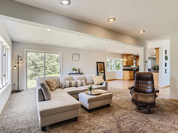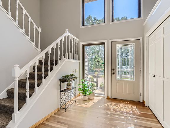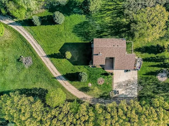 This home sits in a quiet country setting on 2.5 acres with beautiful lake views and lake access on Fish Lake! Open and bright foyer welcomes you in and opens to the kitchen and spacious living room with wood burning fireplace. Bonus study/office space on the main floor. 3 bedrooms up, including a huge primary suite. Walkout lower level features a wet bar/kitchen, family room with wood fireplace, a bedroom & office/non-conforming 5th bedroom. Spacious yard nestled amongst the trees, you'll love the privacy. Across the street is your own private lake access with a boathouse for storage, fire pit area & dock. Your own private oasis to enjoy lake views, fishing and boating!