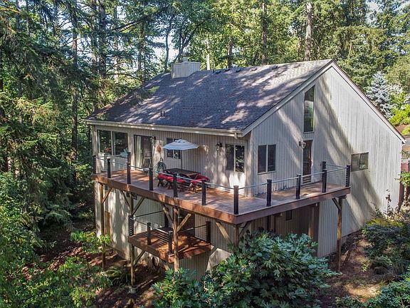 Beautiful home situated in a serene, treed setting in the desirable SE Eugene hills on a cul-de-sac. Privacy with over 1/3 acre yet still close to city amenities. High vaulted ceilings & large windows create plenty of light and nature views. Spacious open kitchen with cook island and SS appliances. Master suite has its own private covered balcony, walk-in closet, lovely soaking tub, dual sink vanity. Loft with skylights. New roof in 2020 and recent decking with designer underlit railings.
