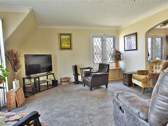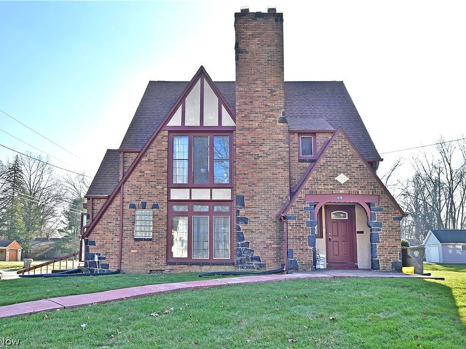 An exceptionally styled, all brick duplex awaits this spacious Youngstown investment property! Featuring engaging Tudor design elements with tall windows and sloping rooflines, this home easily takes precedence over its prominent corner lot. A concrete wall lined driveway leads to a basement level, two car attached garage at the far side end. Meanwhile, both side and front entryways quickly divide living space between the main stairways. Cobblestone accents surround the bold, red trim with matching sidewalks and towering chimney. The featured second story apartment engages you with a sprawling, two-bedroom layout, showcasing sculpted plaster work and plush carpets below. Dual entry doors allow for both kitchen and living room access from the stairway. Wrapping crown moulding continues through both the living and dining areas as natural light pours in from the oversized windows. The central kitchen features a galley layout as large tiles line both the countertops and high traffic floor