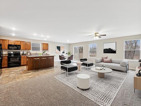 INCREDIBLE NEW PRICE! You can't build for this price plus there is NO NEED TO WAIT! Move right in to this stunning 1.5 year young home! This 4 bed, 3 bath home features an open floor plan, 9' ceilings, wood laminate flooring, main floor laundry, finished walk out lower level and more! The kitchen is stunning with 42" cabinets and a large center island and adjoining great room along with breakfast/dining area with a slider that leads to the composite deck overlooking the backyard. The split bedroom plan provides a private primary bedroom suite with luxury bath including shower w/seat and double bowl raised height vanities. The two additional bedrooms, full bath, mud room and main floor laundry complete the main floor. An open staircase leads to the finished lower level with a huge family room, 4th bedroom, full bathroom and ample storage areas. Zoned HVAC, premium walk out lot, and more! Subdivision has 2 nature trails for you to enjoy. Additional Rooms: Mud Room
