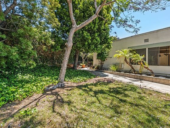 THIS POPULAR UPDATED "NEW VALENCIA" MODEL LOCATED IN A BEAUTIFUL PRIVATE LOCATION WITH NO STAIRS NO STEPS...single story with no one above or below. Double door entry into your open-concept living room with a fully enclosed atrium with skylight. This home is filled with ample natural light and is surrounded by mature tropical landscaping. The spacious courtyard is partially covered with storage cabinets and is a wonderful space to do some outdoor BBQ and enjoy our beautiful Southern California sunshine. The kitchen has white wood cabinets, a refrigerator, an oven with a cooktop, and a dishwasher. Convenient location with easy access to Clubhouse 4 and the nearby shopping centers that surround Laguna Woods Village...situated between gates 5 and 6. Add all this to the amenities offered by Laguna Woods Village and you have a winning combination. The amenities include a private 27-hole championship golf course plus a nine-hole par 3 course, tennis courts, pickleball, lawn bowling, 2 fitness centers, 7 clubhouses, 5 swimming pools, an equestrian center, gardening plots, an art studio, a world-class woodshop, and over 250 social organizations. Also, there is a no-cost bus transportation system around the community and to nearby shopping and bus trips. Laguna Woods is the premier 55+ community in Southern California known for its affordable resort-style living and just a short 6 miles to the beautiful coastal city of Laguna Beach. BEST HIDDEN SECRET IN ORANGE COUNTY.....Listed at $369,000. *The CARPORT number 2056 SPACE 1*
