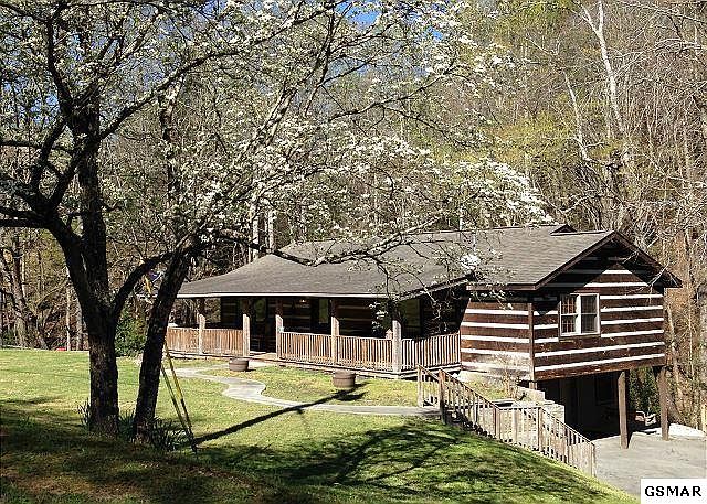 SELLER IS MOTIVATED TO SELL! MAKE OFFER! Hand Hewn Log Cabin named Serenity II has everything you could want in a cabin; privacy away from the hustle and bustle of crowds, 10-15 minutes to the big attractions such as Dollywood, seclusion in a quiet mountain setting with a natural spring creek and level lot. Enter the main floor to enjoy two master suites with king size master suite bedrooms. With a family room to relax in with stacked stone fireplace and cathedral ceilings, you can still partake in the conversation while other family members are preparing meals in the open kitchen area or bring the family outside on an over-sized deck overlooking the creek. Stairs leading down to the entertainment room below give you more space for fun while shooting a game of pool. Lower level also has additional spacious bedroom. An outside door takes you to a wonderful screened in patio with a hot tub and a wood burning fireplace, for evenings that are a little chilly. Serenity I next door is also for sale for $239,900. Buy a package deal! Septic permit on file with health dept. states permit for 1 bedroom but has 3 bedrooms.
