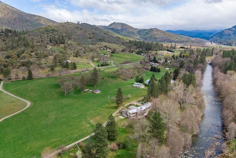 AN OREGON DREAM w/approx 700 ft of Applegate River frontage & water rights for 10 acres of Irrigation! Fly Fish on your own property! Minutes to Applegate Lake & Jacksonville. Timber frame post & beam w/vaulted ceilings, rustic trusses, an architectural masterpiece! 2 family set up, 1bd/1ba cottage is attached w/ vaulted wood bm ceilings, open ktchn to great rm w/wood stove, separate doors to river view. Main hm 8ft glass doors, w lg windows, open beams & many built-ins throughout. Open kitchen w lg island granite counters, 5 burner cooktop lg vaulted open beam ceilings & European style cabinets, walk-in pantry. Lg great rm, w/flr - ceiling windows w/river views, lg beam & stucco wall, wood burning frplc, French doors to decking, 3 Mastr suites, 1 w lg sitting area, open railing, artistic staircase. Lg office loft w/river views. Lg unfinished basement. In-ground sprinkler, hay shed, 48x40 shop/garage w full bath, wine cellar, work benches, & storage area, garden area & fruit trees.