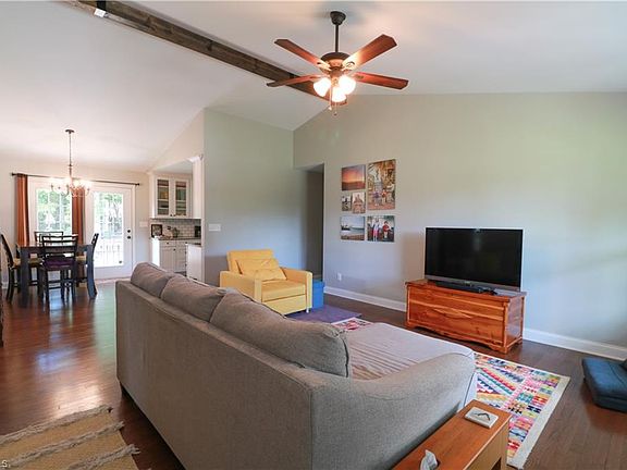 Main level living at it's best with this absolutely adorable 3 bed, 2 bath ranch located in Edgewater, right across from High Rock Lake. Fabulous location, just steps away from the community boat ramp for all kinds of lake fun!! Covered front porch leads the way to a vaulted living area with beam accents, dining area, kitchen with granite countertops, tile backsplash, stainless appliances, pantry with slide out drawers, soft close cabinetry complete with a shiplap accent wall! Split floor plan offers a private primary en-suite with walk in closet and dual vanity, spacious secondary bedrooms with additional full bath. Hardwood floors throughout, gorgeous tile work in baths, large laundry room, 2 car attached garage & plenty of driveway parking. Patio area in back is perfect for grilling and entertaining!! Fenced back yard with wooded privacy. Give us a call today for a tour!! This one won't last long!