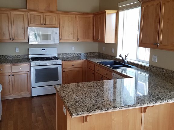 This 11 year old(1731 sq. ft.) home has office or dining room off entry, large living room with gas fireplace, hardwood floors, granite counters and new appliances in kitchen. 3 bedrooms with large master, master bath has soaking tub, separate shower, double sinks with tile floors and counters. Double attached garage with gas forced air heating and a/c. All exterior maintenance is provided giving you more time to play. Renter pays all utilities, landlord does yard maintenance.