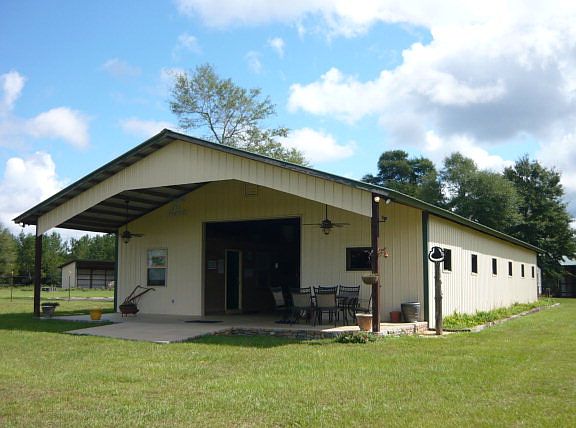Flying M Ranch Horse Farm. True working horse farm. 2/2 approx. 1854 sq. ft. home built in 2009. 84' x 36' horse barn with office/apartment, 8 horse stalls (very elaborate system), and wash room for grooming. 37' x 112' hay and tractor barn with lean to. 2- 12' x 24' portable storage buildings. 2- 12' x 24' run ins, enclosed on three sides. 4 strand electric fence along border and cross fences. Round pen and arena. Approx. 27 total acres with approx. 6 acres West of county road. Very secluded location! View pictures!