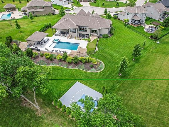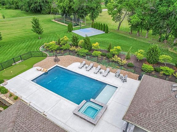 Entertainer's DREAM!! True luxury and style throughout this reverse ranch on just over an acre. Step inside to see the exquisite open floor plan with soaring ceilings. Main level office with French doors. Massive Great Room with built ins and stone fireplace. Stunning kitchen with hood, pot fill, soft close doors, large pantry and quartz tops. Dream mud room with charging stations and tons of space. Primary suite with professionally designed closet, spa like bathroom oasis. Finished basement with Rec room with built ins, wet bar with leather finished granite. Bedrooms 2 and 3 with private baths, 4 & 5 with jack and jill. All baths with upgraded tile, shower doors & quartz tops. Work out in the exercise room or movie night in the home theater. Spend your summer nights enjoying the Gunite pool, w/ hot tub. Truly a piece of paradise with a covered cabana with massive granite bar, upgraded Pentek Industrial Coated concrete plus covered patio and firepit. Right inside the basement walk out find a full bath with laundry for outdoor guests. Enjoy the putting green and basketball court plus extensive landscaping. 4 car temperature controlled garage that is extra deep..room for another gym or car enthusiast. Call today to see!!