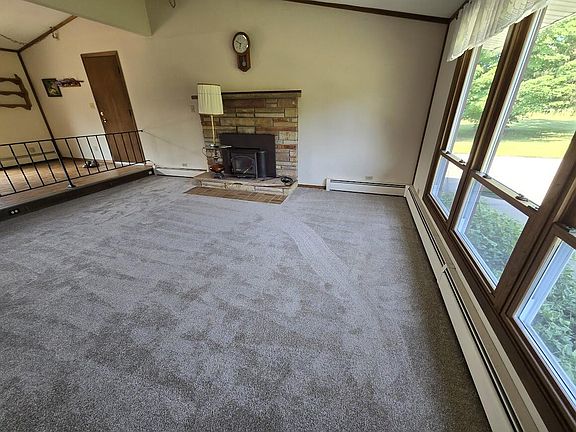 Nestled on 2.77 acres of picturesque land, this property features a full finished basement, providing ample space for entertainment or a cozy family retreat. The main level boasts a spacious, open and inviting living area with a fireplace, ideal for family gatherings and relaxation. The main floor also offers 3 bedrooms and 1.5 bathrooms, and a large slider off of the dining area to enjoy the expansive decking! The lower walkout level features a large family room with a gas fireplace, an additional full bathroom, and laundry facility room. Outside, you'll find an attached 2-car garage for your convenience, as well as an additional 2-car garage, perfect for extra storag Updates to this home include new carpeting throughout in 2024, a new septic system in 2022, a new dishwasher in 2024 and washer and dryer in 2021, and new garage door opener, springs, cables, and pulleys in 2023.