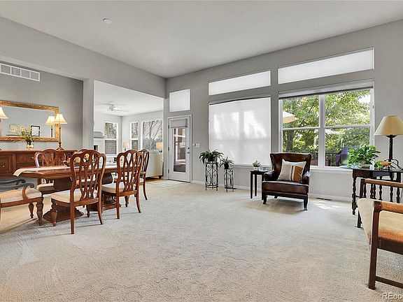 RARE RARE FIND! ORIGINAL OWNER SPRAWLING VILLAGE HOMES RANCH IN GORGEOUS CLASSY AREA! blocks to exceptional Swim and Tennis Club/beautiful groomed grounds and trails! Saddle Rock Golf Course across the street is public. Quiet CuldeSac with lovely yard and privacy from neighbors! Sunny finished walk out! Many updates including roof 2023, kitchen remodel, updated carpet, updated HVAC, 2019 trex deck, 2020 new driveway and front concrete. . Tastefully decorated, pristinely maintained and immaculately clean! Must see the kitchen which has a very cool 'hearth room' with seating area, cozy fireplace and south windows! Oversized great room with high ceilings and combination dining area. Spacious primary suite with luxury bath. Cozy study on main floor. Guest suite is far away from the primary suite with bath and privacy. Handy Main Floor laundry is a large workspace with lots of cabinets. FINISHED WALK OUT BASEMENT has south light/huge family room with patio door and wet bar - a wonderful space for all your gatherings. Gigantic bedroom for home workspace/hobby area/or lots of slumber parties! Beautiful home and neighborhood are waiting for you!
