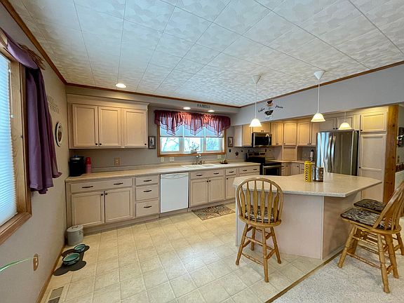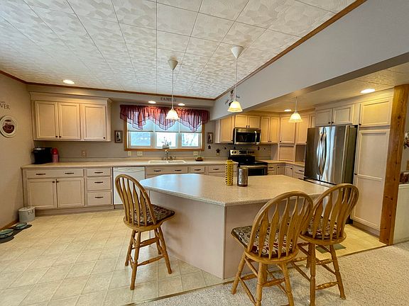 This 3 bedroom home with metal roof offers the best of both worlds with an updated kitchen every chef would love, a grand dining area to enjoy home cooked meals and cozy living space to entertain or read a book. Hide out in the heated detached finished garage and tell stories and lies with the best of friends. For additional storage there's a second pole barn with concrete floor to house the great outdoors toys. Road frontage on 3 sides makes it a snap to access any part of the 1+ acre parcel.