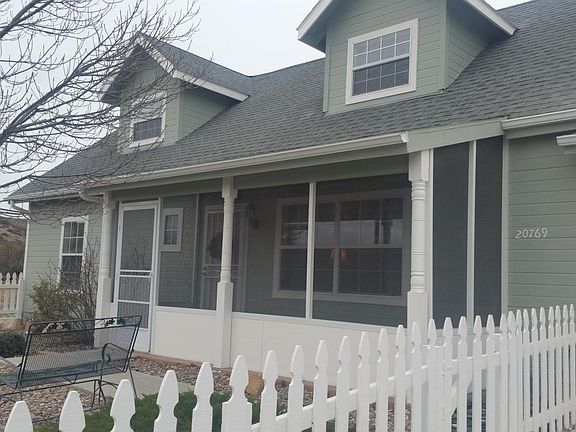 Farm House Charmer. Well maintained one owner home. Great views from the screened in front and back porch. Gas fireplace in living area. Spacious dining area just off kitchen. Solid surface counter tops. Large laundry room. One bedroom and den/office downstairs. Master bedroom with spacious master bath upstairs. Master bath has large soaker tub. Guest bedroom upstairs and half bath that can be a full bath. Fenced dog run. Appliances stay. 15 years left on Solar Panels. New paint outside in 2016. Asphalt driveway. Mountain views from all angles on this over sized lot.