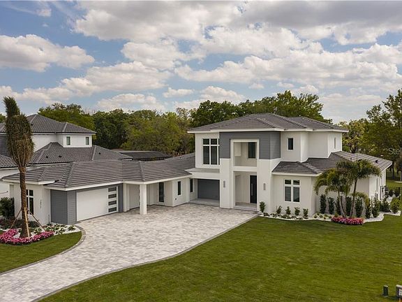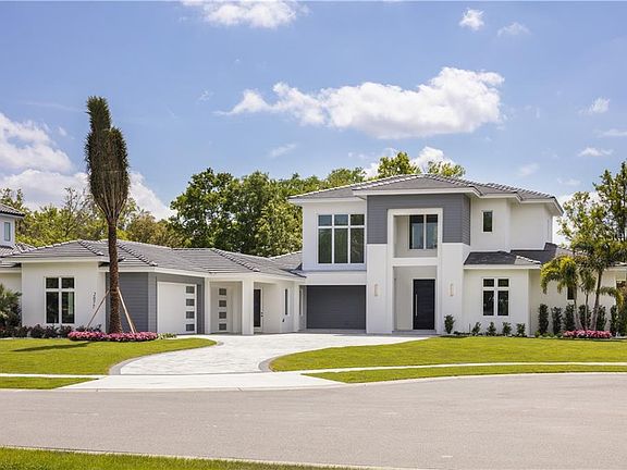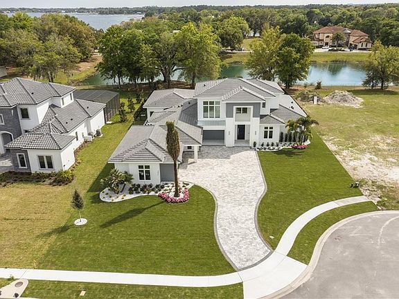 Brand New Custom Home in Bella Vita, this modern beauty offers 5 beds, 5.5 baths, bonus room, lanai, summer kitchen, pool/spa, and oversized 3 car garages. As you approach the home you will be welcomed by a long driveway, beautiful modern landscaping, and a large 9 ft solid wood door. Upon entering the home, you will notice the beautiful, engineered hardwood floor through the home, the great room gives you a sense of the space and invites your eyes through the sliding glass doors to the outdoor huge backyard. The kitchen offers quartz countertops, solid slab cabinets, and a waterfall island that makes for a great eat-in kitchen space. The stainless steel Thermador appliances and modern lights finish this space very nicely. The family room offers a solid book-match porcelain wall which will be a true focal point. The master suite is located on the first floor for ultimate access and offers clean ceiling details and a large master bath with floating cabinets with soft close doors, the freestanding tub, rain shower head, and the 3/8ths glass give it the opulent feel you are looking for, the master closet is huge and is nicely finished with organized cabinet system. AS you head upstairs to the loft and secondary bedrooms you will notice the glass-enclosed wine storage with modern pins and led lighting to accentuate the space. Upstairs you will find a loft space, 2 bedrooms with walk-in closets, and individual baths to boot. There is also ample storage space and an area for a stackable washer and dryer. The game room offers everything you need to entertain your guest needs, beautiful modern cabinets for storage, a sink, and a beverage fridge for you to always have a cold drink near, if that doesn't impress the corners sliding doors will, they open up to the lanai that offers, in-ceiling speakers, power screens to open up space to the outdoors and allow to have doors open without dealing with the bugs. A summer kitchen, gas fireplace, and tongue and groove ceilings add to the detail of this home. The outdoor area is amazing and gives you an exceptionally large open space to enjoy some cornhole or place a hammock between the gorgeous foxtail palms located at the rear of the yard to enjoy a book and the breeze coming from Lake down. Schedule a showing today and make this modern home yours!!!