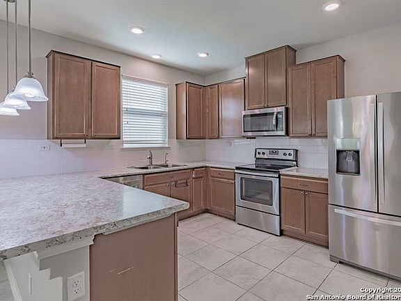 Beautiful and well-maintained 4-bedroom, 3-bath home in the highly desirable Village at Creekside! Spacious floor plan features a full bedroom and bath downstairs-perfect for guests or a home office. Large Loft Upstairs! Primary suite on second level along with 2 full sized secondary bedrooms. The open-concept kitchen boasts newer appliances, ample counter space, and plenty of storage, flowing seamlessly into the main living and dining areas with ceramic tile throughout. Thoughtful touches include ceiling fans and window treatments in every room. Step outside to enjoy a Texas-sized covered patio-ideal for entertaining or relaxing. Conveniently located near schools, shopping, dining, and easy access to I-35. Don't miss the opportunity to own this versatile and move-in-ready home!