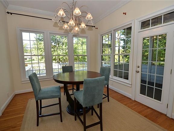 This stately, brick home in Asheton Park backs up to the lake, offering a peaceful backyard setting. You can experience the beautiful view from your spacious deck. The grand foyer leads to an elegant formal dining room with exquisite crown molding and wainscoting throughout. The great Room features a fireplace with built-ins on either side and plenty of natural light. The Kitchen offers a center island, tile back splash, granite counter tops and a double oven. The spacious laundry room includes a utility sink & additional counterspace. Intricate detail and exquisite molding throughout!