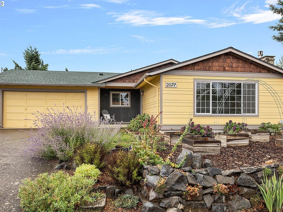 Welcome to this charming single-level ranch home on a generous .20-acre lot. This 3-bedroom/2-bathroom gem is a must-see! Step inside and be greeted by bamboo floors that flow throughout the living spaces, as well as a gas fireplace, built-ins in and a beautiful mural in the living room. Filled with natural light, this home also boasts an incredible Mt Adams view. The Primary Bedroom offers an en suite bathroom, large closet and a view of the beautiful backyard. Spacious kitchen and dining room with a sliding door leading to the covered back porch and huge backyard oasis. The backyard is a gardener's dream with terraced planting areas, raised garden beds, and a convenient shed for all your outdoor endeavors. This outdoor space is fully fenced, ensuring privacy and offers a view of Mt Adams as well. With a two-car garage, you'll have plenty of space for your vehicles and storage. Located in an excellent neighborhood, conveniently located to all Hood River has to offer. This home won't last long, so schedule a tour for your chance to make it your own.