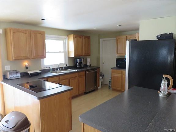 Showings begin at OPEN HOUSE Sunday March 17th. Country Ranch home features open floor plan. Newer Oak kitchen w/lots of cabinets, counter space and pantry. Breakfast bar is open to dining room and living room.Newer windows throughout and slider off kitchen to back patio overlooking trees and farmland.First floor laundry.Updates:Tear off roof 2013.Furnace,central air and HWT 2017.Blacktop circular driveway 2005.Enjoy the covered front porch, new entry door, laminate flooring, ceiling fans, some updated electric. Minor TLC needed.Third bdrm and small area in living rm need some drywall finishing.Huge 2 story barn is 58 x 34 , has metal roof and workshop.Full basement. All on 1.7 country acres! PRICE INREASED BY $3500...SELLER WILL HAVE NEW SEPTIC SYSTEM INSTALLED AT THE EXPENSE OF $10,500.