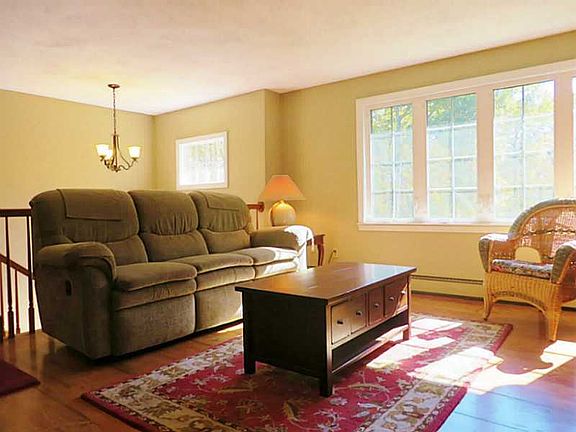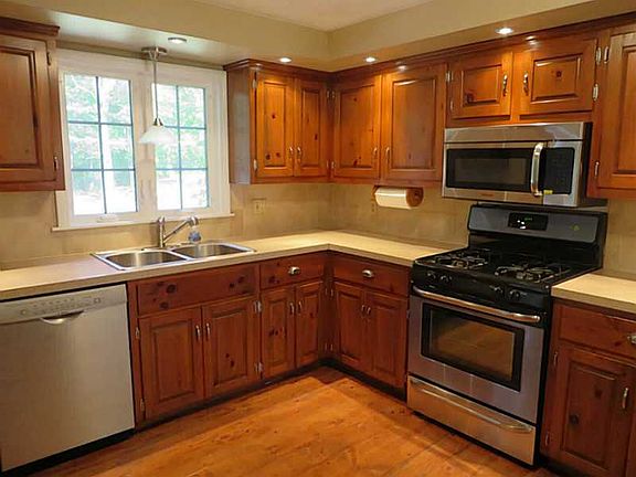 Rare find! Lovely 3 br home set way back from road on 6 private acres. Beautiful kitchen with brand new ss appliances, freshly painted, glowing pine floors, walk out lower level w/woodstove. Versatile barn w/water and electricity. Horses welcome!