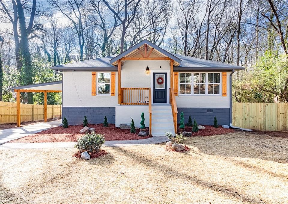 A HOT renovated brick gem in the vibrant heart of East Atlanta/Decatur. Thoughtfully redesigned from top to bottom, this home seamlessly blends modern sophistication with timeless charm, creating a sanctuary that exudes style + comfort. Prepare to be captivated by the impeccable attention to detail showcased throughout, from the all-new flooring and windows to the sleek, modern bathrooms adorned with luxurious finishes. The pièce de résistance awaits in the heart of the home – a newly redesigned kitchen that is as functional as it is breathtaking. Adorned with quartz countertops and a stylish island that comfortably seats four, it's the perfect setting for culinary adventures and casual gatherings. Natural sunlight floods every corner of this home, creating a bright and inviting atmosphere that uplifts the spirit and warms the soul. "Queen Flat Shoals" main level features two bedrooms and two full bathrooms, a comfy living space and laundry. The lower level features an in-law suite or studio apartment, complete with its own full bathroom, modern kitchen, and laundry. Perfect for hosting and/or rental income, this versatile space adds a layer of convenience and flexibility to suit your lifestyle needs. Outside is complemented by fresh paint, newly paved driveway and a fly gable porch, while a cool custom wooden mailbox adds a thoughtful touch of character. Situated on a rather large lot, the expansive front and backyard offer ample space for outdoor enjoyment and a back deck for pure entertainment. Conveniently located just off of I-20 and mere minutes from East Atlanta Village, Kirkwood, and major highways, this home offers unparalleled access to the best of Atlanta.