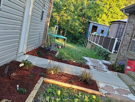 Comfortable, peaceful 3 bedroom, 1 & 3/4 bath home with garage, outbuilding, and swimming pool. All carpet has been replaced with vinyl plank flooring. Upgraded water heater about a year old. The pool is above ground but comes straight off the back deck with a deck around it and a pool shed. This house has a large laundry room off the hallway next to the bedrooms. The image of the master bedroom is shown with a king-size bed. It is pretty spacious. The master bathroom has 2 walk-in closets. The garage is electric with a remote on the front and has a utility roll-up door in the back. The garage also has an upstairs storage loft. The house has central heat and air with backup propane heaters in the living room and master bathroom. The front porch is perfect for relaxing on the swing or in some rocking chairs and visiting with friends and family. This house is out of town. It has a small dirt driveway that comes right off of a paved county road. It's not too far from town but far enough out that's it's definitely the country feel. It is surrounded by woods or cow/chicken farms.