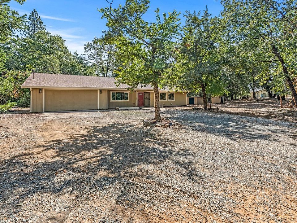 Welcome to this single-story ranch-style retreat in Colfax with 1,288 sq ft, 3 bedrooms, 2 bathrooms, and a spacious 1.8-acre lot. The beautifully updated gourmet kitchen shines with luxury vinyl floors, granite counters, and sleek black & stainless steel appliances. Large breakfast nook attaches to the kitchen to provide convenient dining access. The living room offers comfort year-round with a ceiling fan and a real wood-burning stove. Renovated bathrooms feature tile flooring and new tiled bathtub with overhead shower. Outdoors, a large covered patio and an inviting pond area make for perfect entertainment spaces. This property seamlessly combines modern elegance and rustic hill country charm, providing a serene haven for you to call home. **No central heat/air.**