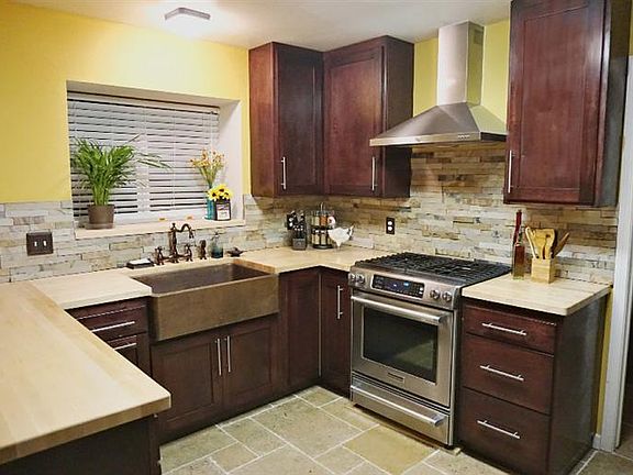 Ready to move in, shows like a model home. Home features newly remodeled kitchen with beautiful dark cabinets, butcher block counter tops, accented with tile back splash. Extra Deep Copper Farmhouse sink. Beautiful tile floors throughout. Ceiling fans throughout home. Property is all fenced and zoned for animals.