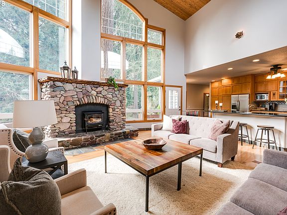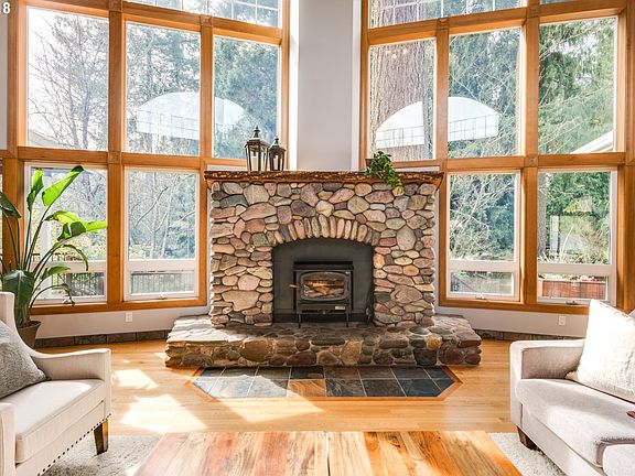 Beautiful mini-estate - main floor was award winning construction in 1996! Great room w/21 foot ceiling and windows. Stone fireplaces and mahogany decks. Hardwoods, new quartz, stainless steel, carpet, paint and updates. Guest house w/covered deck. Barn, six horse stalls, indoor & outdoor arenas, paddock. Gorgeous gardens, raised beds, fruit trees, waterfall and pond. Forest deferral. Quality schools.