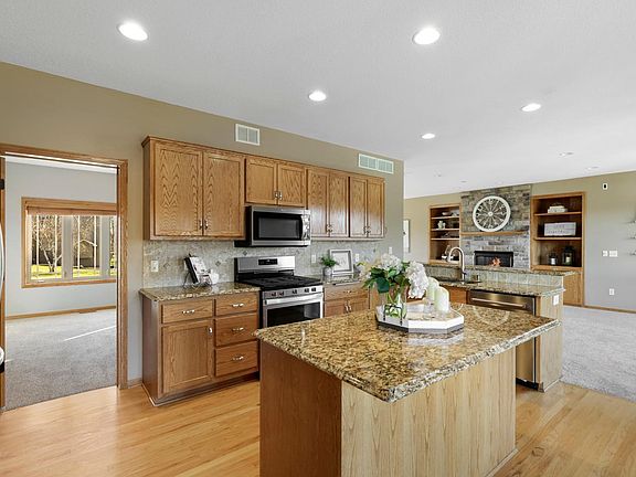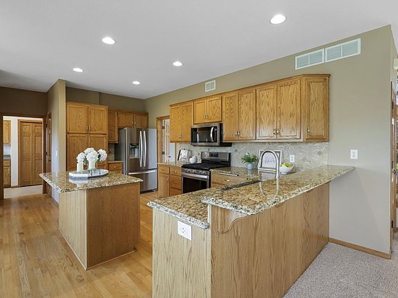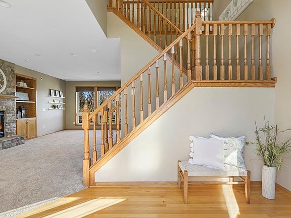 Welcome to this beautiful home where every detail is crafted for comfort & leisure. This stunning home offers resort-style living, with a sparkling saltwater pool overlooking a tranquil pond, seamlessly blending natural beauty & high-end amenities right in your backyard. On the main level, an inviting great room features a gas fireplace, elegant built-ins, & expansive windows framing the breathtaking backyard. This room flows effortlessly into an expansive kitchen & informal dining area, ideal for daily living & entertaining alike. A versatile formal dining room or home office adds flexibility, ready to adapt to your lifestyle needs. Step into the vaulted primary suite, your own private haven w/ dual sinks, a separate tub, & a walk-in shower—an ideal space to unwind. The home’s three generously sized junior bedrooms share a full bath, creating a welcoming area for family or guests. The lower-level is an entertainer’s dream, boasting a spacious family room w/ a corner gas fireplace, a fifth bedroom, & a full bath. Perfect for gatherings or quiet evenings. While unwinding on the maintenance-free deck or patio that surrounds the pool, you'll be captivated by the west-facing backyard, where breathtaking sunsets paint the sky over the tranquil water. An extra-deep, 3-car garage completes this exceptional home, offering ample storage for vehicles and outdoor gear. Discover a lifestyle where comfort meets style.