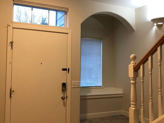 The charming house has 3 bedrooms plus a loft, double cars garage. Spacious living room with gas fireplace built-in, and A/C. Kitchen with island and walk-in pantry. New floor/paint/carpet/curtain/kitchen appliances. Vaulted master bedroom, with double sinks, and walk-in closet. Bedroom#2 with window seat, and also walk-in closet. Great location! Walk to Quatama Max station, and Quatama park. Near Intel, Nike and Tanasbourne area.