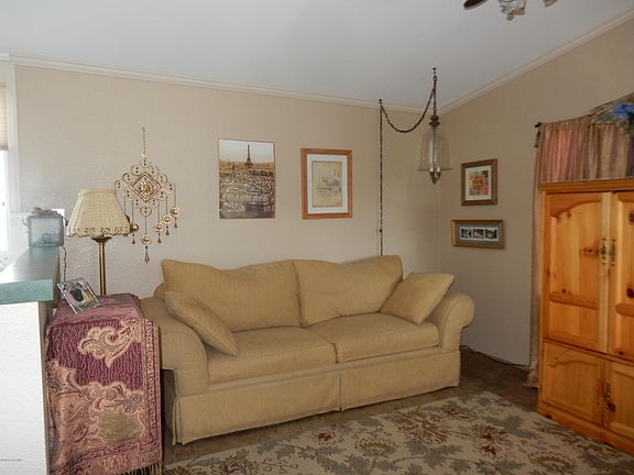 This perfect one bedroom 1 bath home has so much added outdoor space you won't miss the indoor sq footage. Home is perfect for a couple or part time residence. There is a large covered porch on the front and an open deck with wonderful views on the back. The 20x12 workshop is a great space for project or storage. Paved driveway, RV pad and 12x20 awning round up this exceptional affordable property. All electric home.