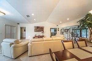 R10058836 Fabulous to date pool home offers a tropical paradise with adjacent tennis courts. Volume ceilings, marble flooring, wood kitchen cabinetry with granite tops, split bedrooms, large family room, screened pool-patio with built in BBQ area. Owner will havewall and closet put back in 3rd bedroom.