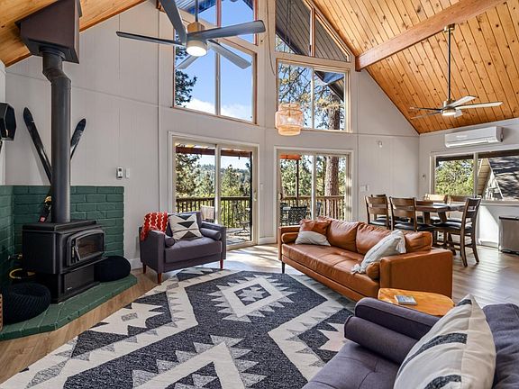 This is a hard to come by updated A-frame cabin with a tall floor to ceiling glass/windows wall and unobstructed mountain views. The home is fully updated and offers lots of space on 3-levels. Large upstairs loft, 2 bedrooms on main level, bonus room downstairs and 3 full bathrooms (one on each level). Improvements include a remodeled kitchen, three updated bathrooms, energy efficient mini split systems for cooling and heat, dual pane windows, LVP flooring, new whole house generator, composite decking and more. Unlike many homes in the area, this one offers a large level driveway with plenty of parking for your guests and toys. RVs and boat will all fit here! Surrounded by tall pines the cabin is ready for full time personal use but is also a desirable weekend getaway short term rental AND most furnishings can stay. Enjoy all that Pine Mountain Lake has to offer - swimming, boating, fishing, hiking, bicycling, tennis &pickleball, stables, gun range, campground and an 18-hole championship golf course plus country club for your dining and entertainment pleasure. Groveland is about a 2.5hrs drive from many locations in SF Bay area or you can fly into Pine Mountain Lake airport in about 45mins! Yosemite National Park is just 25 miles up the road.