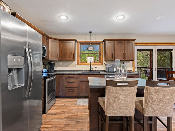 Listed by Emily Costopoulos, Keller Williams Black Hills Realty, 858-472-6986. Tucked away in coveted Shirt Tail Gulch on 2.78 wooded acres, this secluded cabin is surrounded by mature pines and boasts a majestic view of the Northern Black Hills. Enjoy your morning coffee watching deer, turkeys, and the famous Deadwood big horn sheep from the expansive 60’ long, newly refinished deck featuring a modern cable rail system with a view of the fire pit lower on the property. Right outside the thoughtfully designed kitchen, featuring Knotty Alder cabinets and stainless steel appliances, is a second deck showcasing another private and scenic view. This newly remodeled home features 4 bedrooms, 3 bathrooms and ample room for entertaining with its two living rooms, heated mudroom and bonus room or gym. The two car detached garage offers additional storage with an electric powered ladder and room for vehicles or recreational toys to explore historic Deadwood, famous Mickelson Trail and legendary Sturgis. This show-stopping home is move-in ready for a family, second home, or filled with dream vacation rental potential.