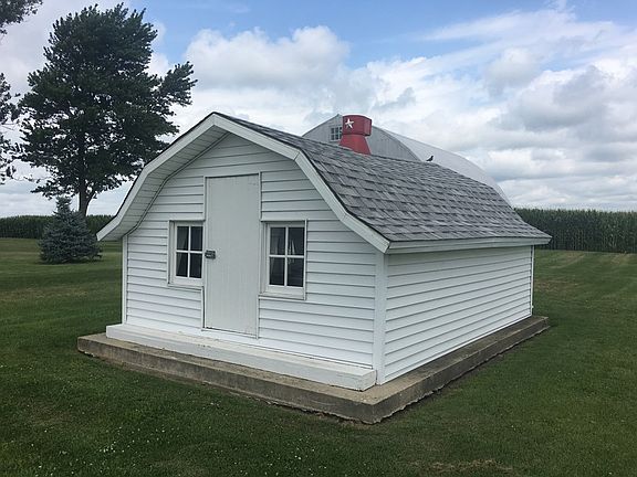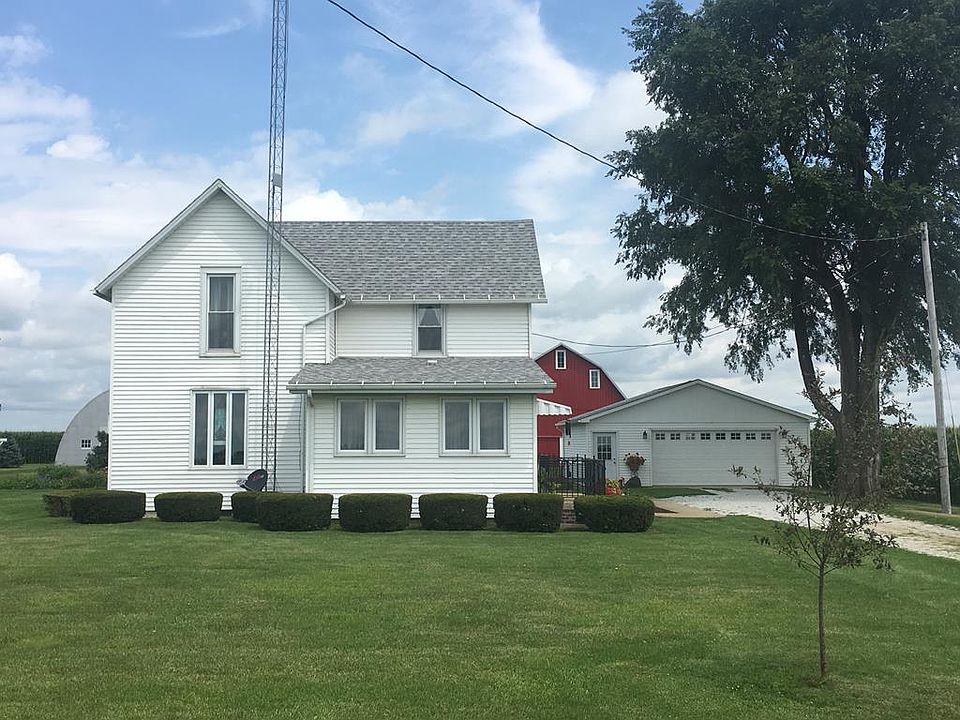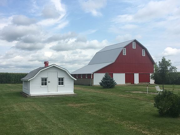 Impeccable Condition, describes this 1 1/2 Story Farmhouse just Northwest of Hoopeston. Approx 1600 sq. ft. of living space. Around 3.5 acres of beautiful ground with trees. 2 Double car garages, and 5 other outbuildings. All have newer roofs, and all but 1 have electricity. Playhouse. Chicken coop, 1,500 sq. ft. pole barn. Charming red Barn with feed bunks. Garden. Beautifully landscaped. Horses allowed! The home features quartz countertops in the kitchen.Most Appliances stay. The house is as immaculate on the inside as it is on the outside all the way around. Water softner owned. Home has had replacement windows and vinyl siding added. The roof is approx. 4 yrs. old on the house. Master bedroom down with 2 more up, and a possible 4th bedroom upstairs currently used as an exercise room. Could also be a second bath. Gorgeous country views. Amazing price! Tons of storage space. Laundry room on main level. Hurry on this one! Won't last! All sq. footage, yr. built, room sizes approx