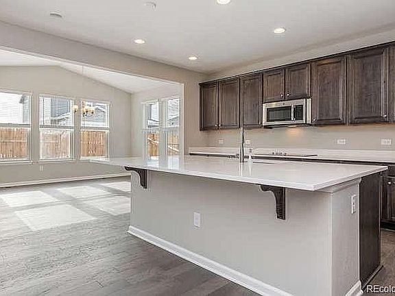 You will not want to miss this brand NEW Richmond American Home in Fairfield! This popular Bedford model features upgraded smoke cabinets, gorgeous quartz countertops in your dream-kitchen, corian countertops in the bathrooms, hickory hardwood floors throughout, and a gourmet kitchen package with stainless steel appliances including a counter depth refrigerator. You will love the inviting sunroom just off of the kitchen which hosts a great space for entertaining and provides a lot of natural light. Enjoy the extra space in the beautifully finished basement showcasing a bedroom, full bathroom, and large rec space. Convenient access to both I-25 and E-470 as well as plenty of shops and restaurants! This home has it all...you will not be disappointed! New additions: Great looking top of the line Hood in the kitchen, backsplash, newly installed landscape in the backyard - concrete path, retaining wall, sprinkler system etc. Huge Patio as well as large size porch.