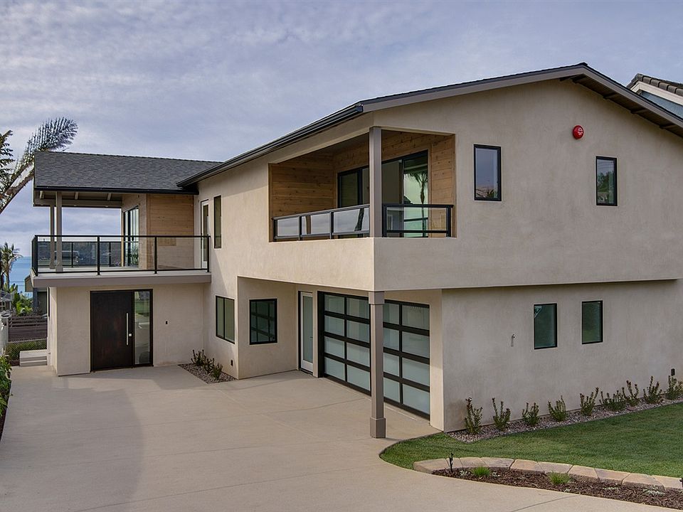 This newly Constructed contemporary beach home offers it all! 4 bedrooms with an optional 5th 4 full bath rooms dumb waiter blown-in cellulose insulation all Low VOC finishes and all LED lighting surround sound in family and living room gas fireplace in family room english oak hardwood throughout and all custom cabinetry using FSC certified wood. Master suite boasts his hers walk-in closets private ocean view covered balcony plus a steam shower and radiant heat floors in the master bath.The kitchen is a chefs dream huge island walk-in pantry Wolf range Bosch dishwasher and ample space for prepping all while looking out at the Ocean views! There is an on-suite down 2 car attached garage fire pit in yard mature fruit trees and ocean views views VIEWS!