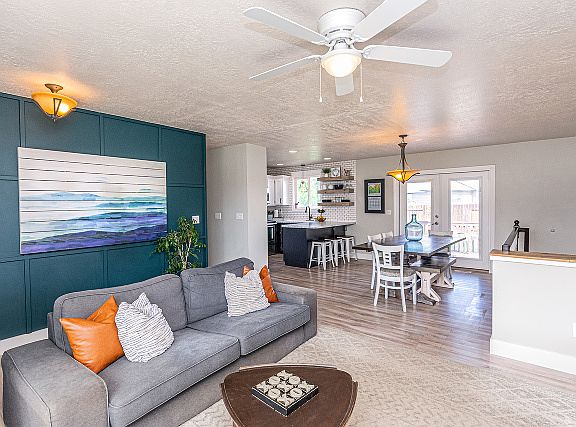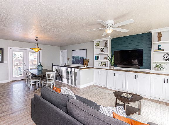 This updated 5 bedroom 2 bath rambler is a must-see. Great floorplan offering a nice open family room and kitchen area with plenty of room for dining plus lots of natural light through the big bay windows. Well cared for and loaded with features including new laminate flooring, carpet and paint, custom built-in cabinets and bookcase, fireplace, theatre area, playhouse, and an awesome backyard with multi-level deck perfect for entertaining. Large 2 car garage with additional parking space and fully fenced and landscaped yard with mature trees and garden area. Fantastic location on quiet street just off Antelope Dr. just minutes away from Freeport Center, I-15 and HAFB. Come see the home you have been looking for today.