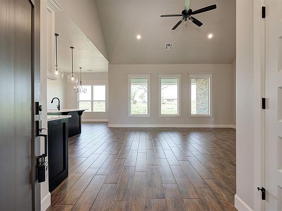Beautiful 4 bed, 2 bath home located in the brand new Hux Grove addition in Blanchard! Just minutes from the Winter Creek golf course! The cathedral living room ceiling will take your breath away from the moment you open the front door! Floor plan boasts an open concept living area, kitchen, and dining nook. Primary suite features separate his/her vanities, a huge walk-in closet, spacious walk-in shower with multiple shower heads, and jetted tub. Home has a 3 car garage and covered back patio that is perfect for taking in a gorgeous Oklahoma sunset. You do not want to miss out on this amazing property! **Builder is offering $8,000 for upgrades or closing costs with an acceptable offer!**
