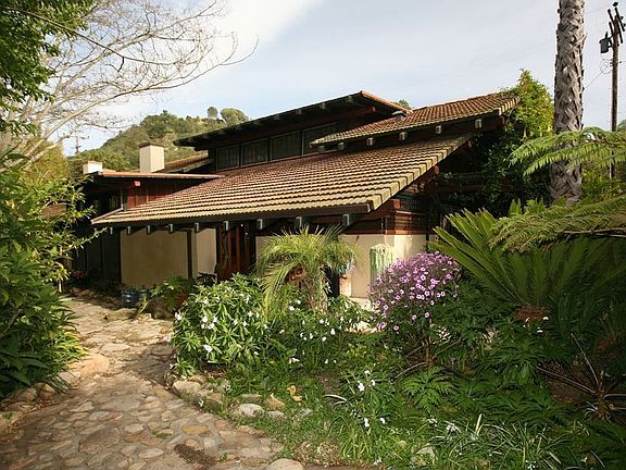 Incredible rural living only minutes from downtown. This 3.65 acre compound in Mission Canyon has a 3 bd, 2 ba main house, 2 guest cottages, extra workshop, & large barn w/ office. The main house is a craftsman Greene & Greene revival with 2 stone fireplaces & handmade wood decor. There is also a seasonal creek & waterfall, pool, lush BBQ area, tropical landscaping, horse corral & much more!