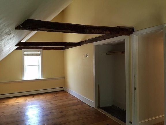 Village Colonial with welcoming front porch graced with wide pine floors boasting a gardening lot sloping to a brook in rear. The home with newly finished mudroom/laundry offers two large fireplaced versatile room, post and beam exposed in first floor bedroom, galley kitchen with exterior door to the enclosed porch and featuring a large cathedral ceiling bath on first floor. The upper level offer a beautifully updated main bath with tiled surround of tub, and tiled floor as well as front to back master bedroom with two closets and additional large upper level bedroom with 2 closets. Young septic