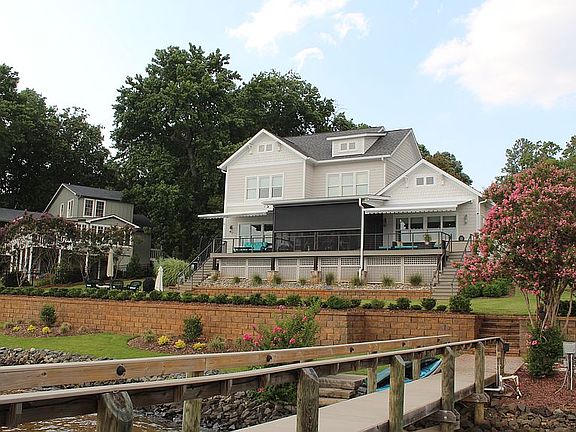 This Tega Cay waterfront home will "WOW" you w/ its long-range panoramic views of the main channel. Relax & lounge by the lakeside pool, screened porch, or decks overlooking the lake. Enjoy boating & water sports from your covered dock w/ boat lift & 2 jet ski ramps. Gorgeous architectural details throughout, w/ beautiful flooring, vaulted ceilings, ship lap, & craftsman style trim. The bright & open floor plan is great for entertaining. You'll love the lake facing great room w/ stone fireplace that flows to a spacious dining area. Gorgeous gourmet kitchen w/ white shaker cabinets, large center island, SS appliances, double oven, gas cook top, & huge pantry! The main level master suite features 2 custom walk-in closets & spa-like bath w/ dual vanities, freestanding tub & huge tile walk-in shower. Upper level boasts 4 additional bedrooms & loft area. Live the recreational lifestyle of Tega Cay, w/ golf, tennis, swimming, parks & trails. No HOA, Tega Cay schools, & convenient location.