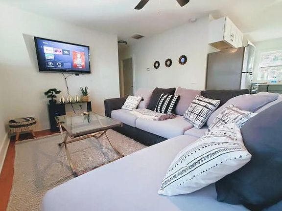Beautifully renovated 2 bed/2 bath unit on the main level of DUPLEX home. Renting fully furnished. Laundry in-unit. Carport reserved for this unit. Large backyard. Great, convenient location in East Point! Just a couple of miles from Hartsfield airport, 15 min drive to Downtown Atlanta, 5 min from Tyler Perry Movie studios. Note: there will be tenants in the downstairs unit. The backyard is a shared space. There is the possibility of noise transfer between units. Looking for a maximum of 3 occupants. Utilities are split with the owner. Last month's rent due at signing. No smoking is allowed. No large events. No pets.